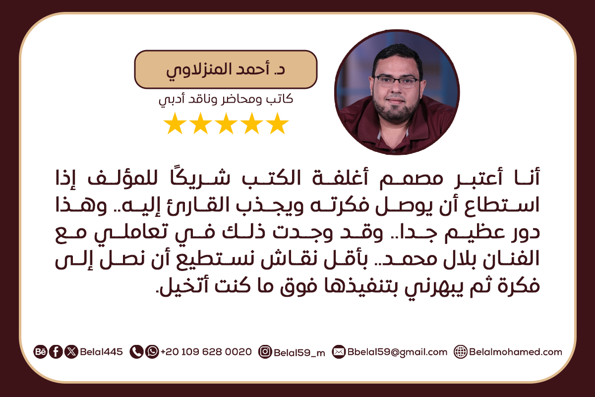 أؤمن أن غلاف الكتاب ليس مجرد واجهة، بل هو تجربة بصرية تمهّد لما سيجده القارئ داخل الصفحات.
